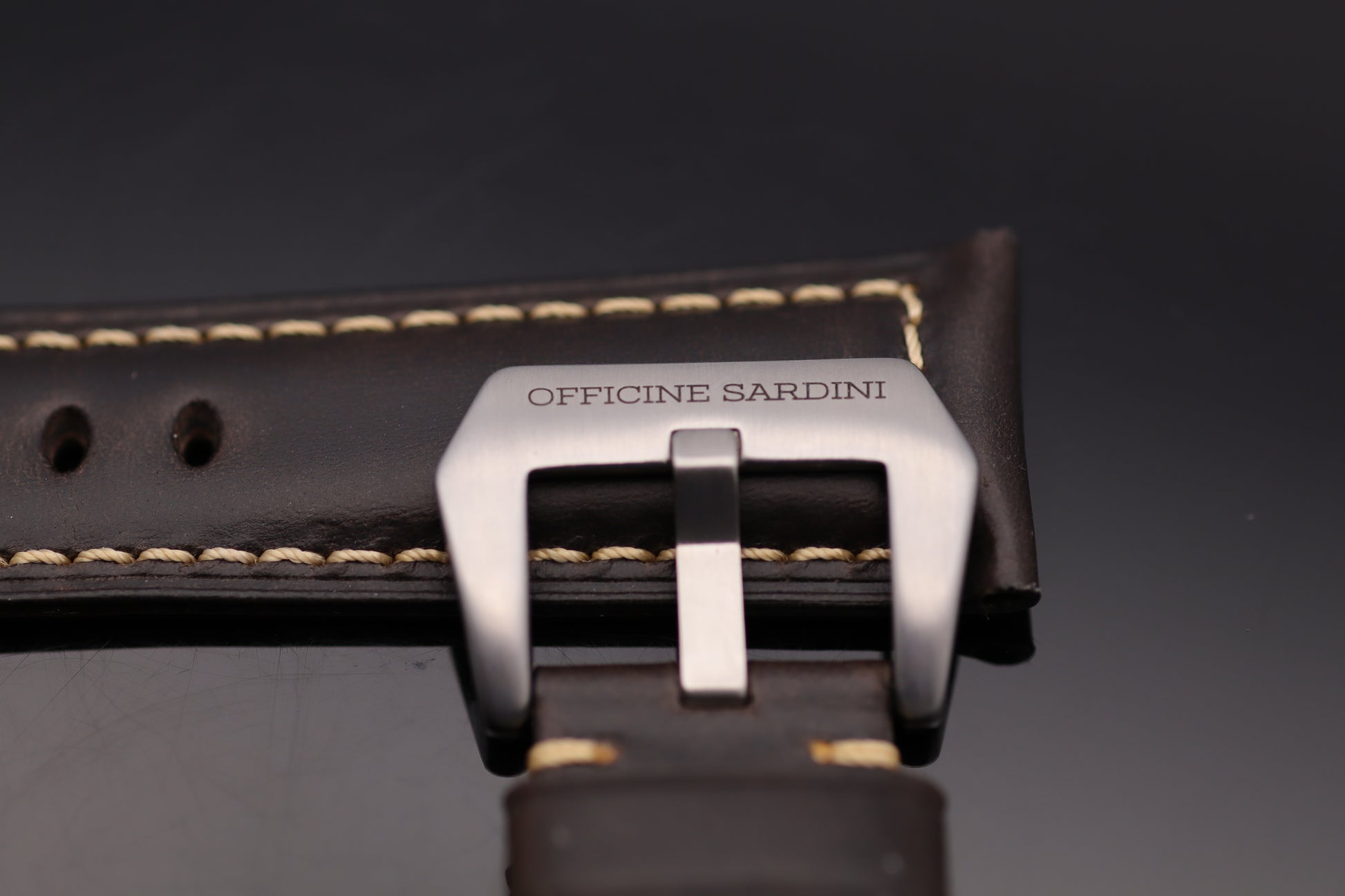 Hochwertiges Lederarmband für Uhren mit einer Anstoßbreite von 26 mm. Das Armband ist in sorgfältiger Handarbeit gefertigt und besteht aus echtem Nubuk-Leder in Coffee Braun mit einer stilvollen cremefarbenen Naht.